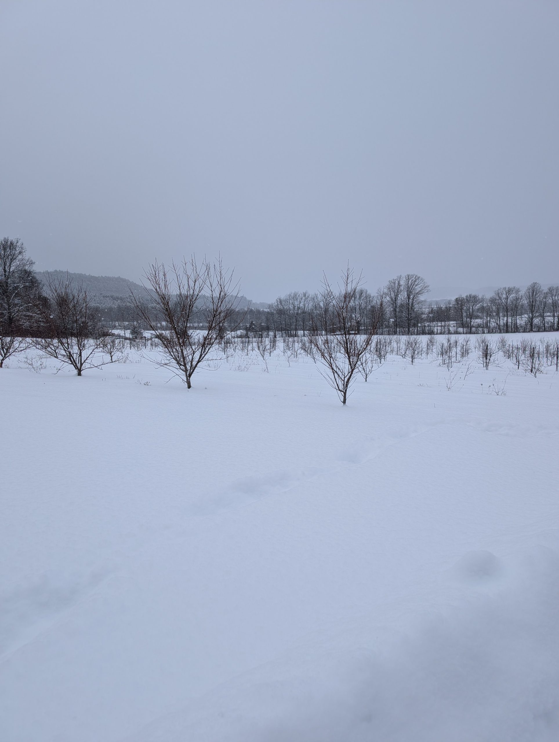Winter is the time for pruning the apple trees! It is best to prune while the trees are dormant. It is a bit of an art- you try to shape the tree as it grows, and figure out which branches to remove to allow the most sunlight.